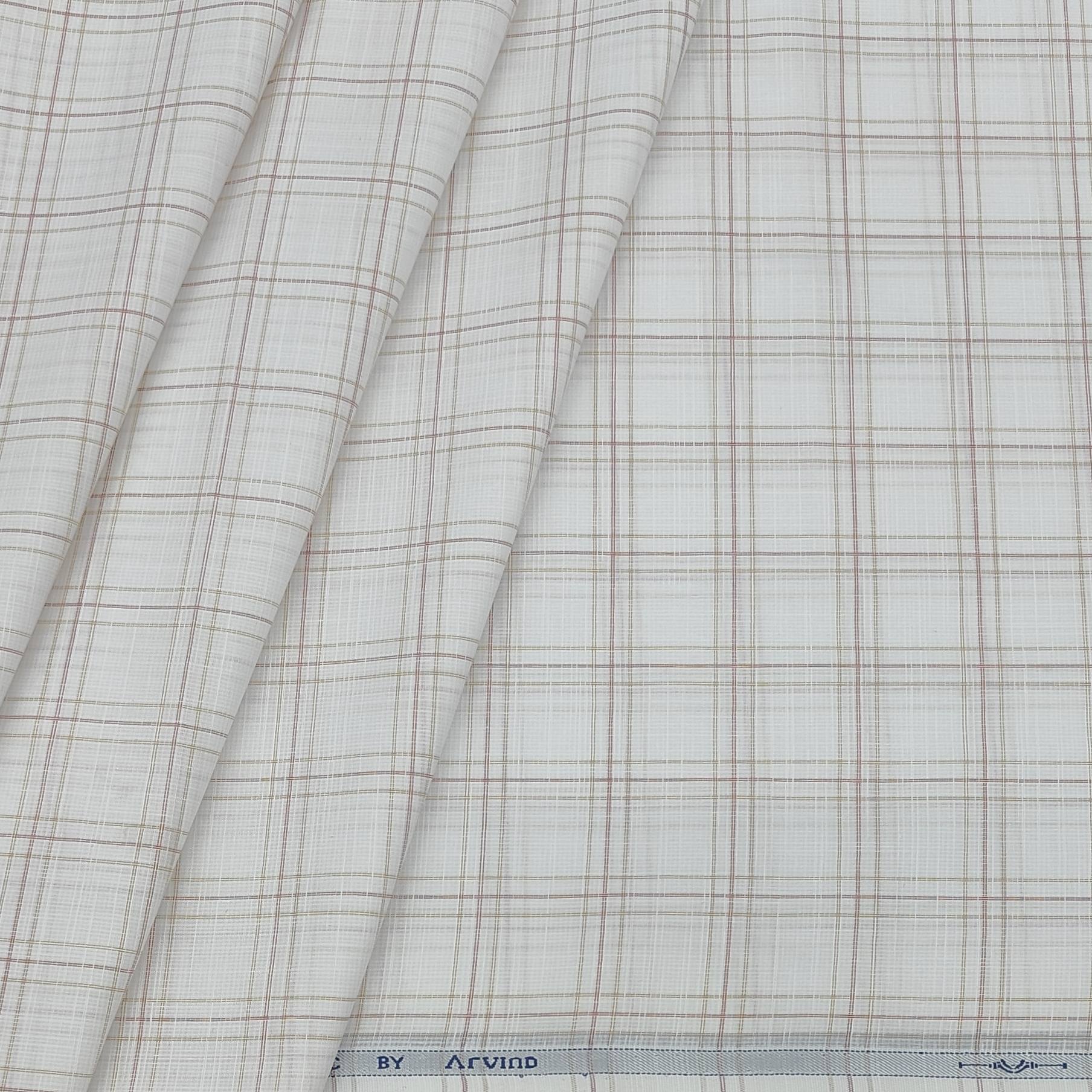 Experience the ultimate luxury and comfort with our Arvind Cotton Blended Check Shirt Fabric in Light Brown and Off White. Made with premium quality materials, this fabric is perfect for men's formal and party wear shirts. Upgrade your wardrobe with this superior cotton blend fabric.