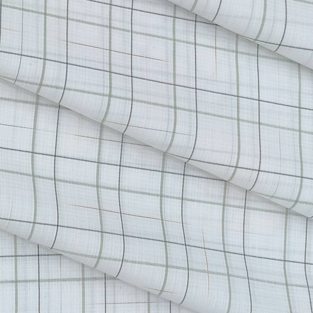 Shirt Fabric ManTire Poly Cotton Wrinkle Free Check Colour Swamp Green N White