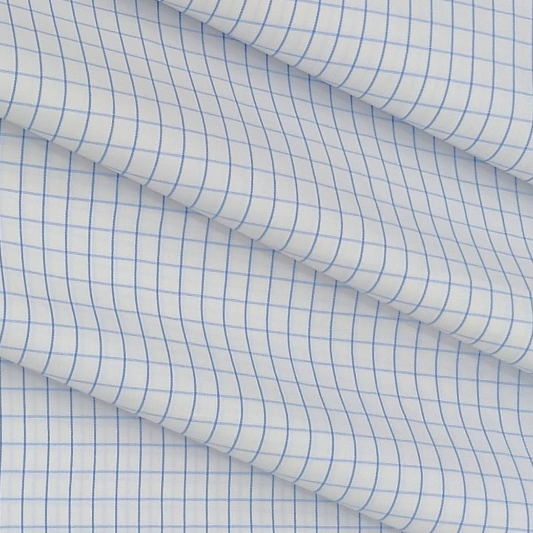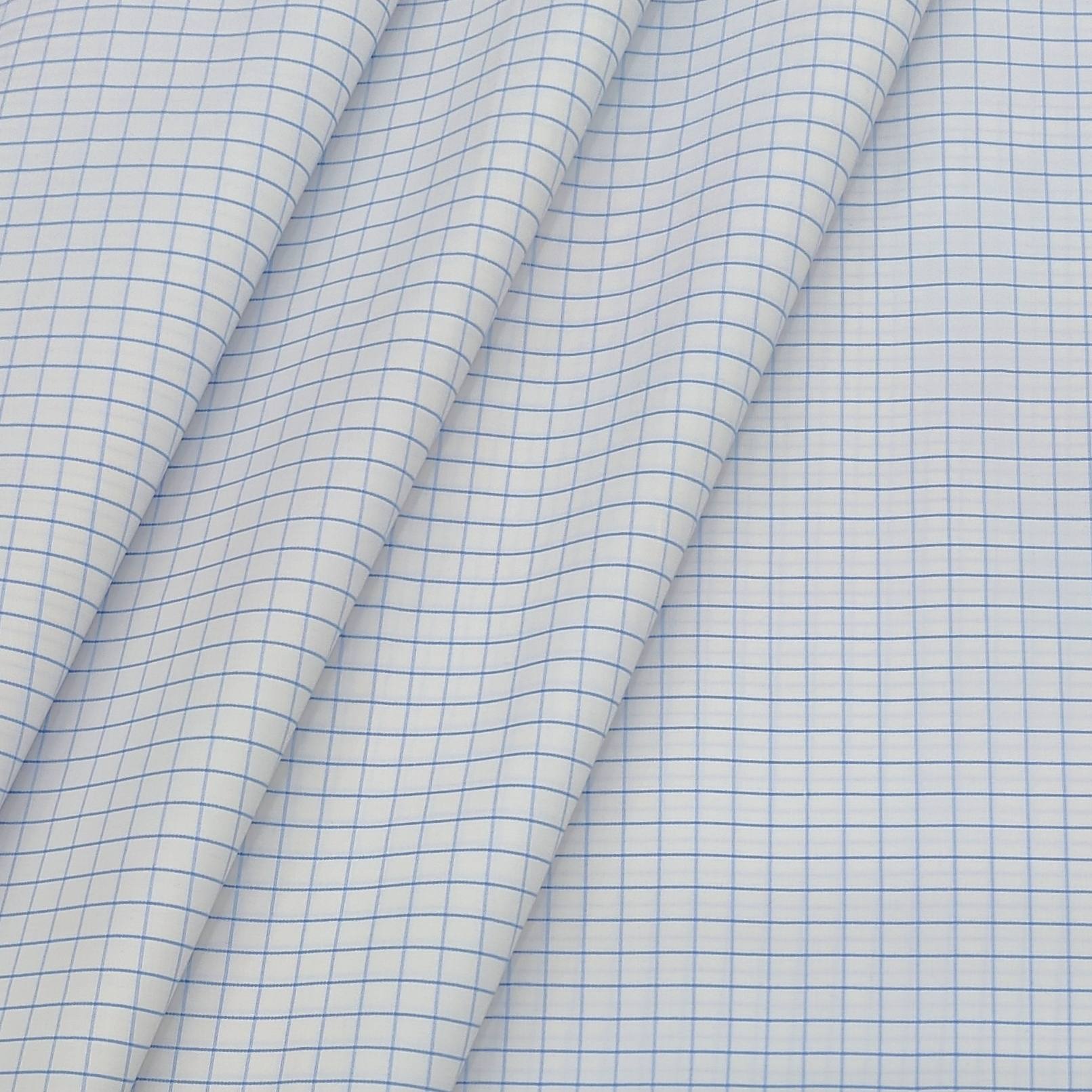 This premium quality shirt fabric by Mantire is perfect for formal occasions. Made from a mix of poly cotton, this wrinkle-free shirt features a small check pattern in a light blue color. Stay looking sharp and professional with this high-quality shirt fabric.