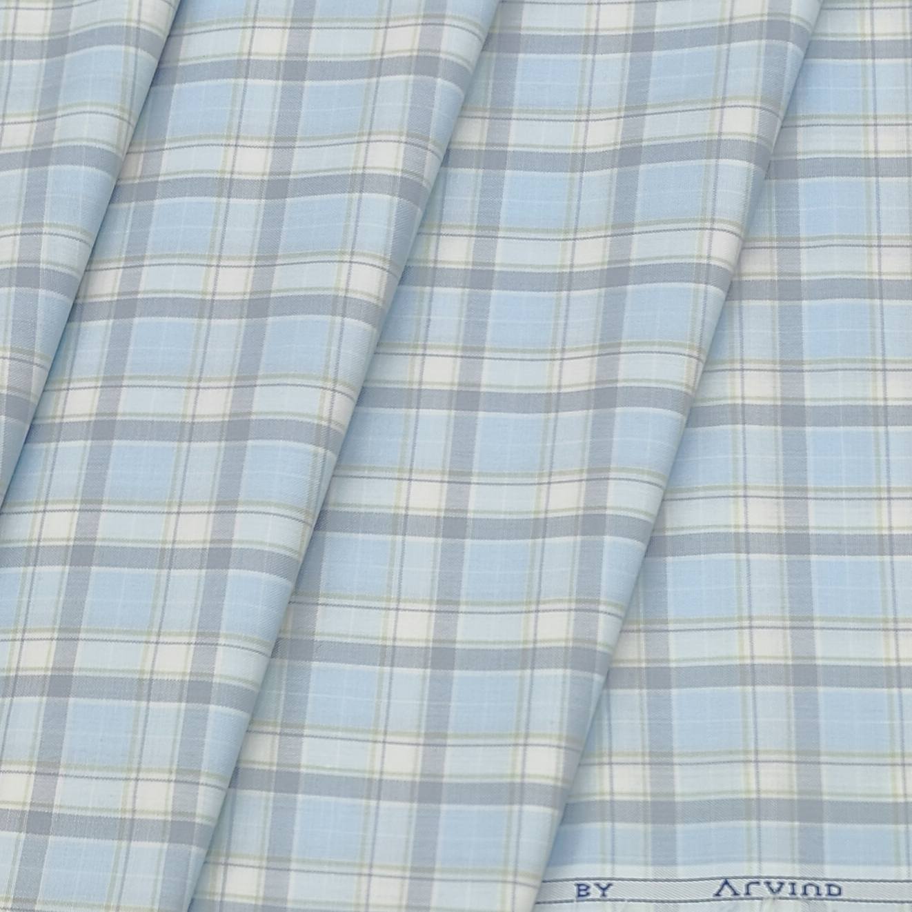 Shirt Fabric Arvind Cotton Blended Check Colour Sky Blue N Light Green