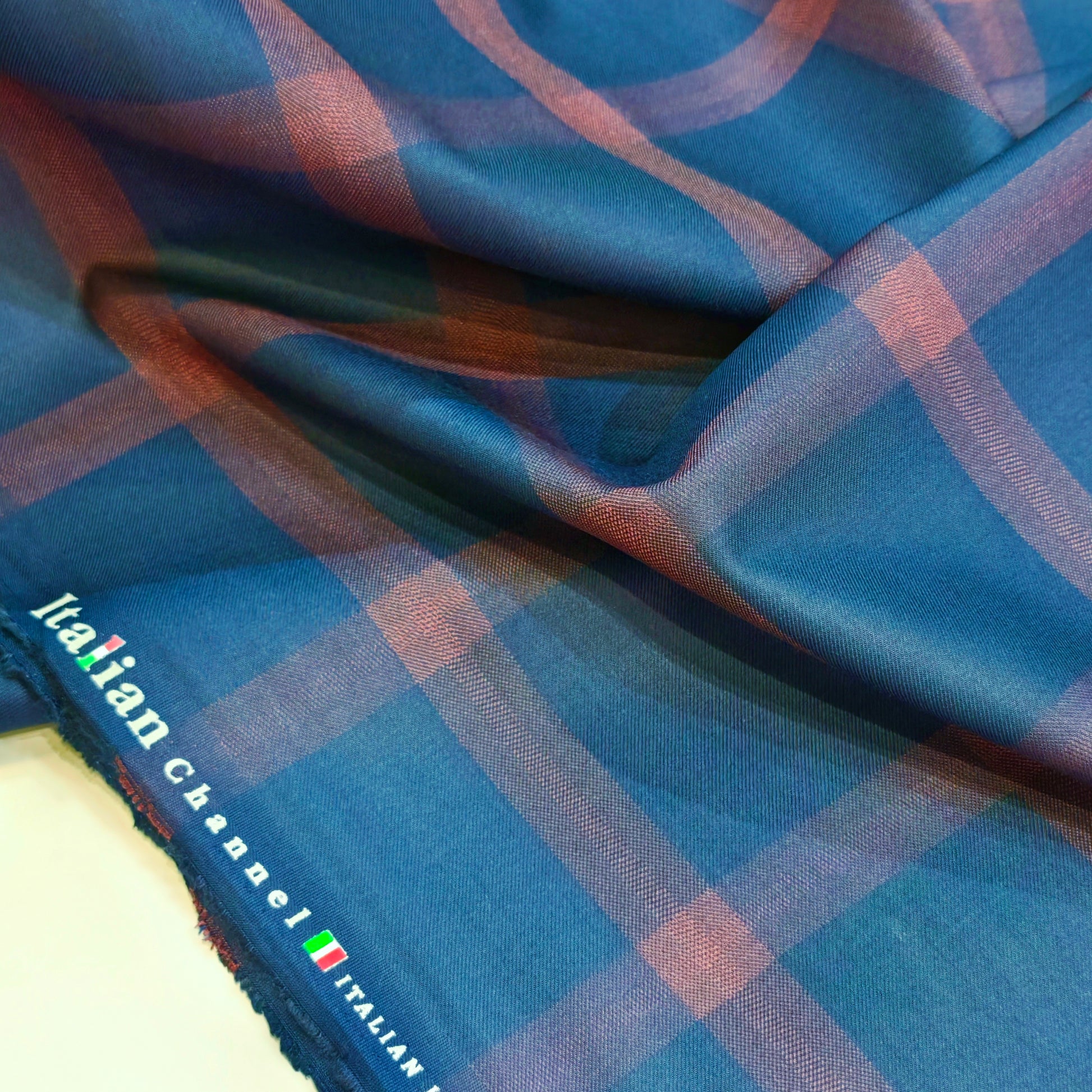 Italian Channel Men’s Terry Rayon Unstitched Check Suiting Fabric (Blue and Wine)