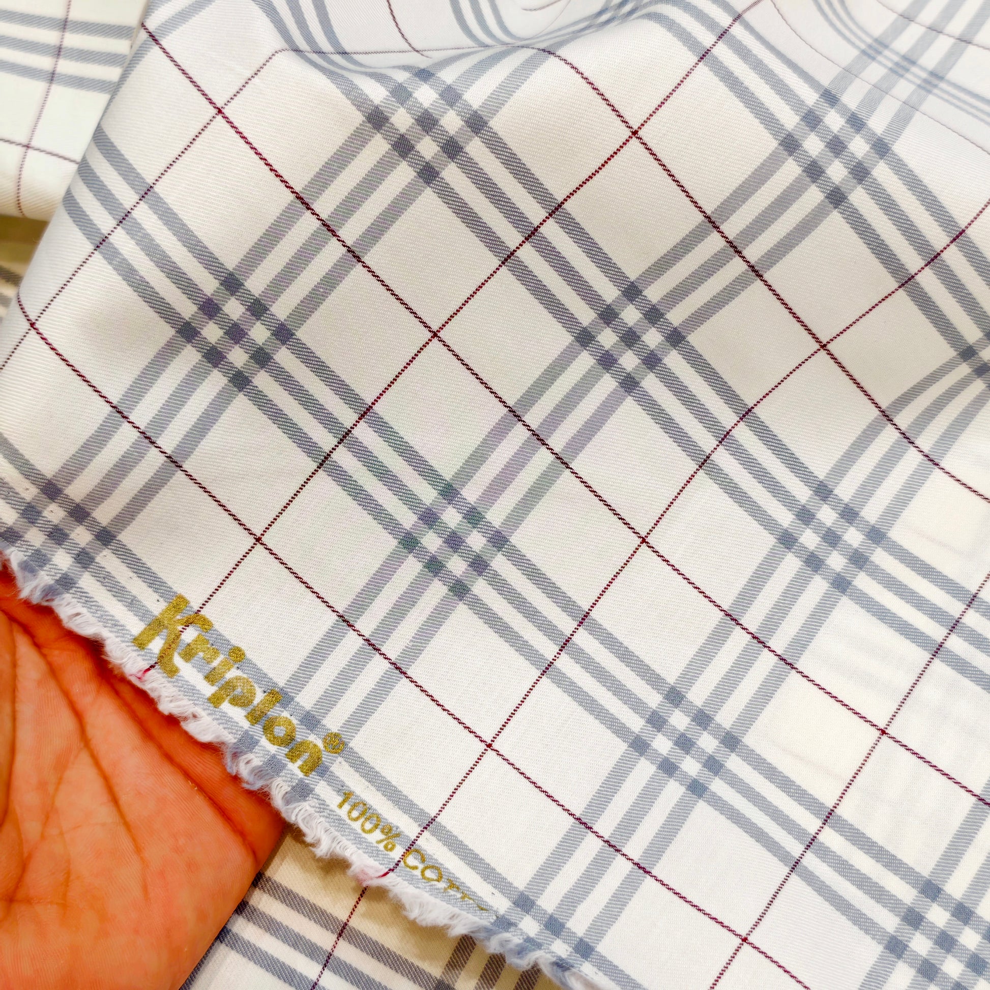Kriplon Men's Cotton Check Shirting Fabric(Off White).