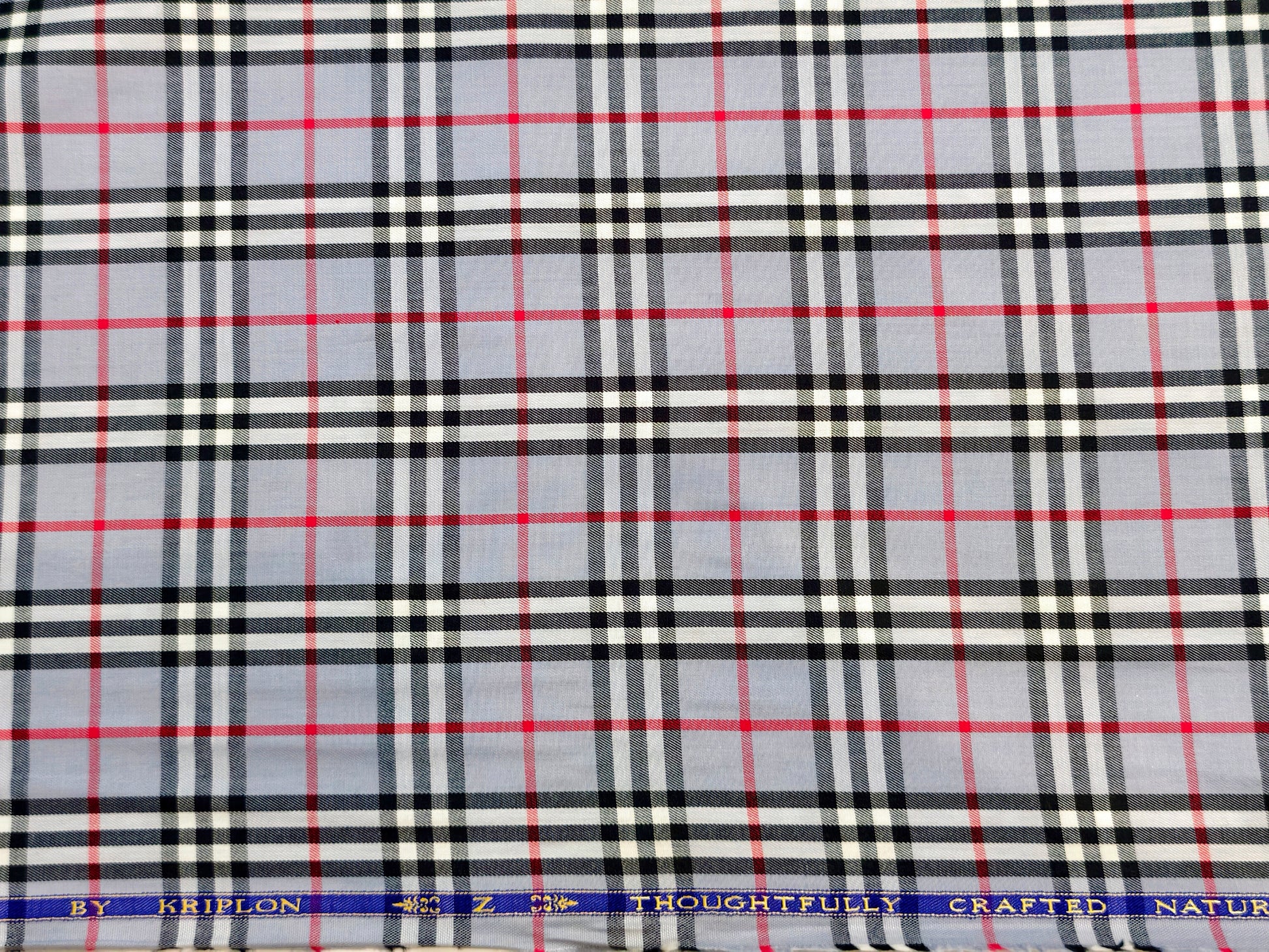 Kriplon Men's Giza Cotton Unstitched Shirting Fabric(Burberry Check).