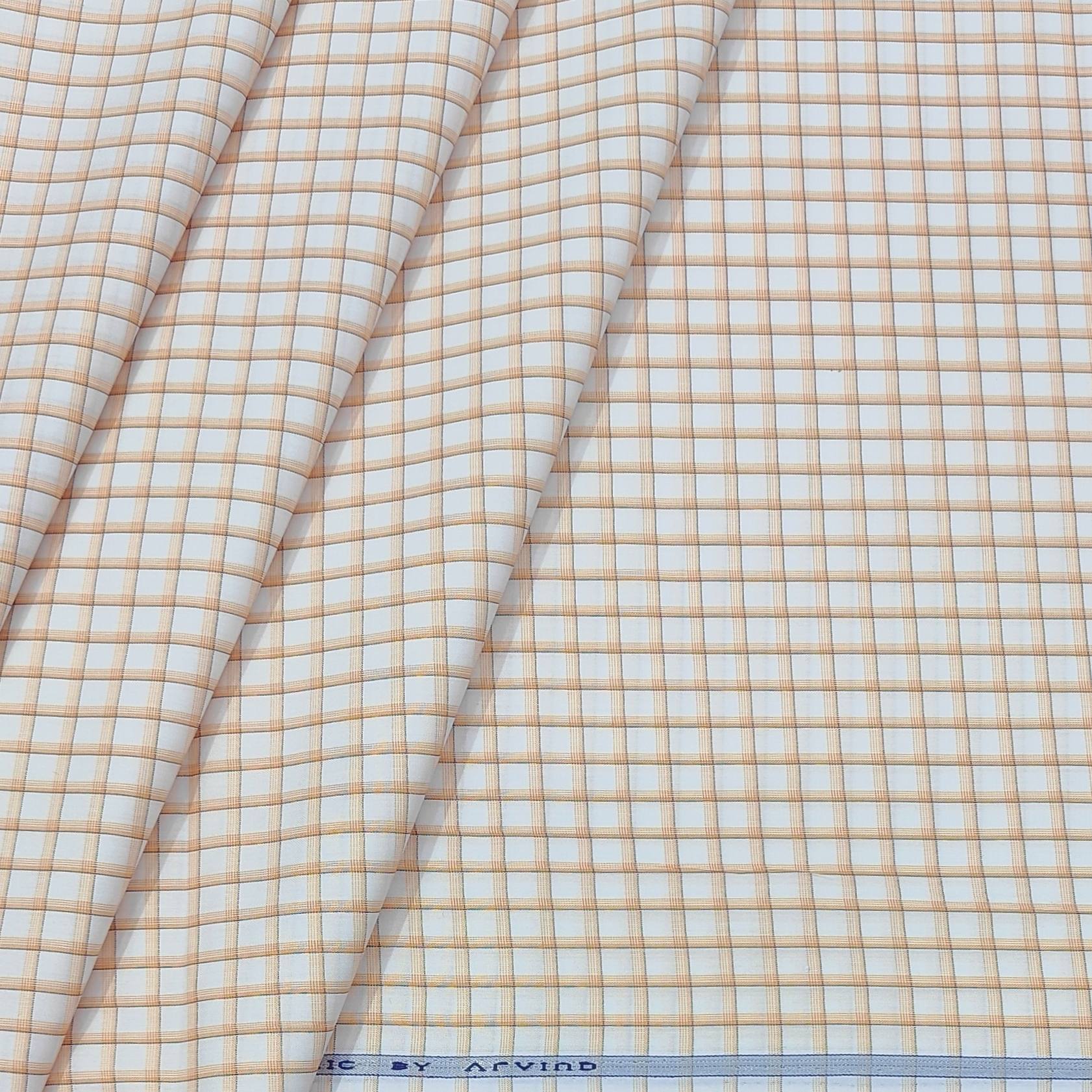Shirt Fabric Arvind Cotton Blended Check Colour Light Orange,Brown