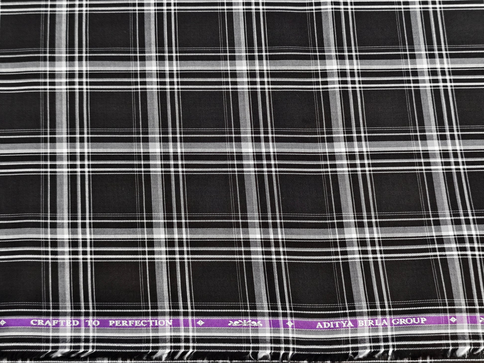 Soktas (Aditya Birla group) Men;s Giza Cotton Check Shirting Fabric(Black).