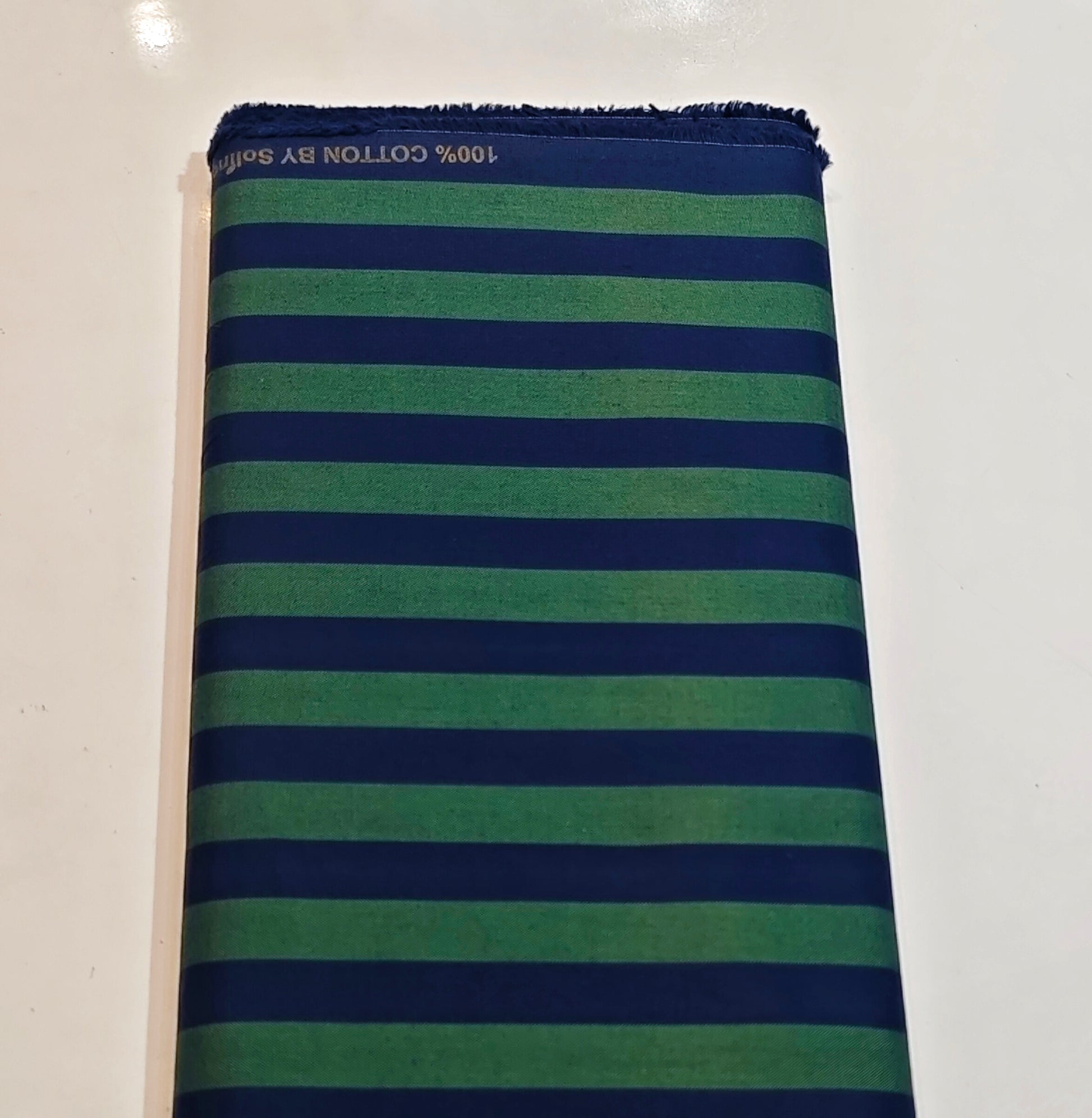 Solino Men's Giza Cotton Unstitched Shirting Fabric(Blue and Green Stripes).